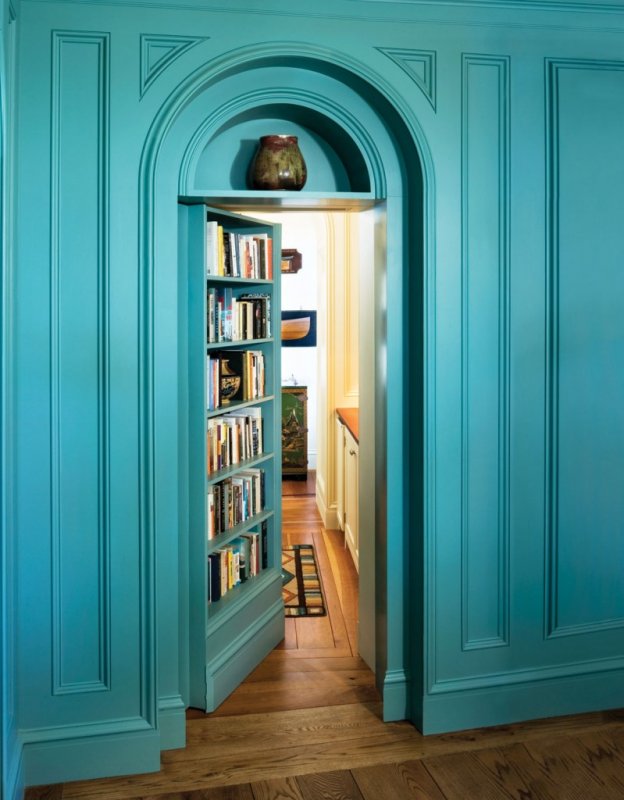 Интересное экстравагантное решение, которое, несомненно, сделает ваше жилище загадочным и экзотическим. Секретной дверью можно замаскировать комнату, куда вы не хотите допускать посторонних. Спрятанная за неглубоким откатным шкафом, она останется тайной для ваших гостей. Никто из них не догадается, что на самом деле скрывается за небольшим стеллажом с книгами или декором.