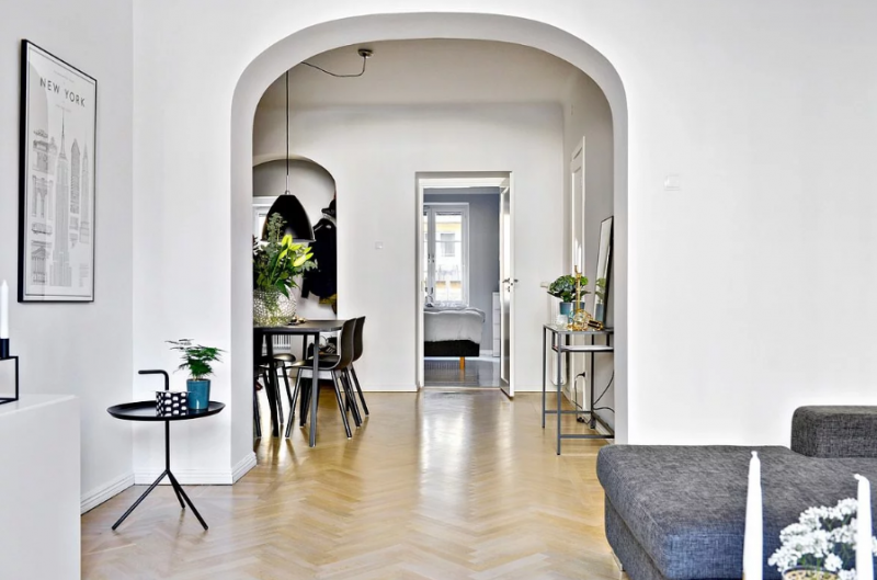 Дверной проем, лишенный двери – популярный дизайнерский прием. Это практичный и довольно бюджетный способ увеличить полезное пространство, использовать его более грамотно. Подобрав подходящую отделку, можно превратить обычный проем в эффектную и уникальную деталь интерьера.