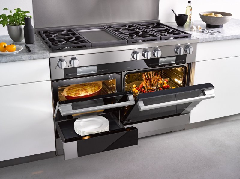 - дополнительные функции – встроенная микроволновка, пароварка, гриль, полка для подогрева тарелок – их наличие сильно увеличивает стоимость устройств, однако положительно влияет на качество блюд, делает процесс приготовления максимально простым и комфортным;