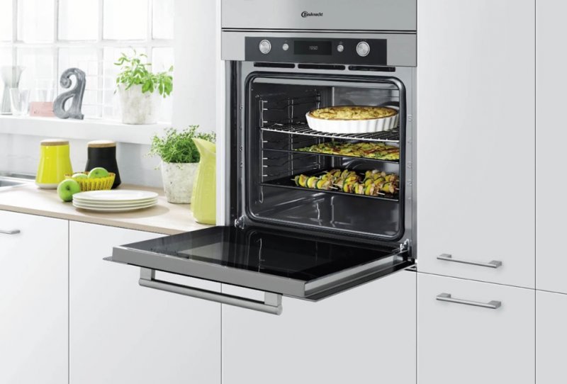 - Отлично справляется с базовыми задачами – может запекать, тушить, жарить, сушить – при наличии конвекции. Однако для него недоступна одновременная готовка на нескольких уровнях.