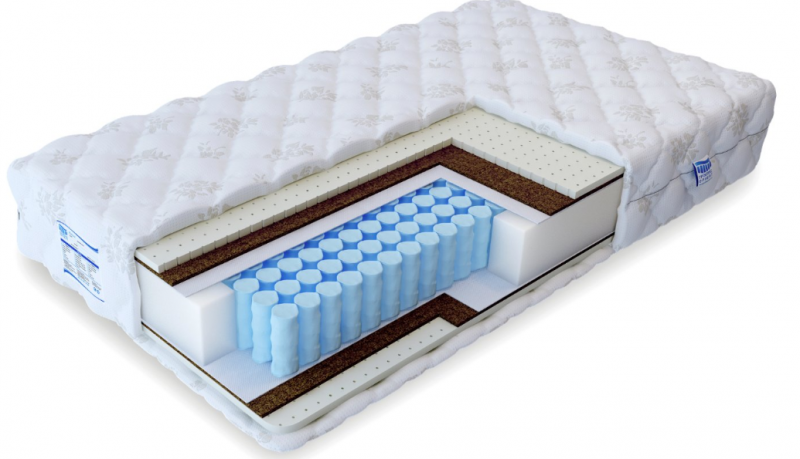 - беспружинные – такие модели чаще всего имеют высоту 16 см. Существуют и альтернативные варианты от 15 до 24 см. Самые тонкие изделия с высотой от 2 до 10 мм находят применение только в качестве настила для изношенного дивана или временного покрытия для раскладушки или кресла, трансформирующегося в кровать. Кроме этого, с их помощью можно корректировать степень жесткости базового изделия. Этот вид спальных поверхностей носит название топпер.