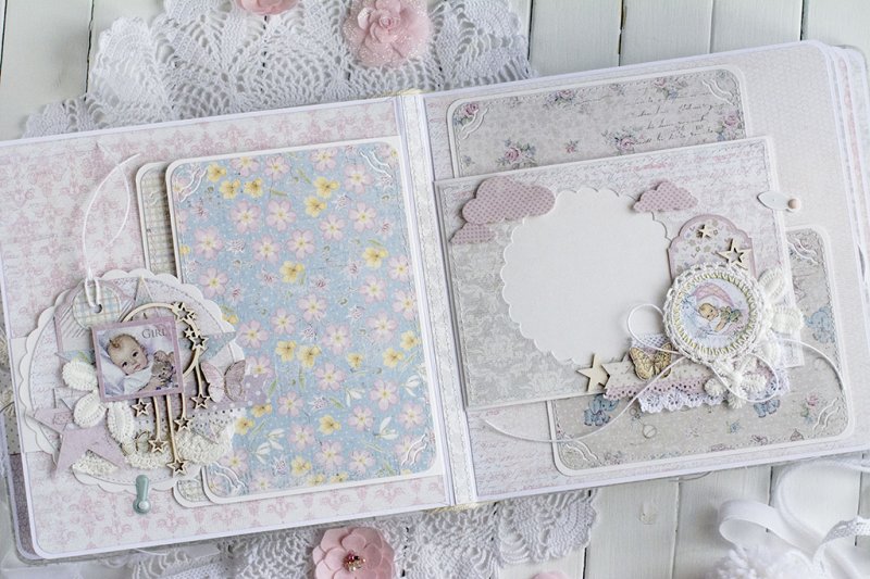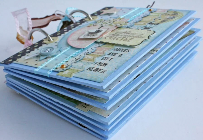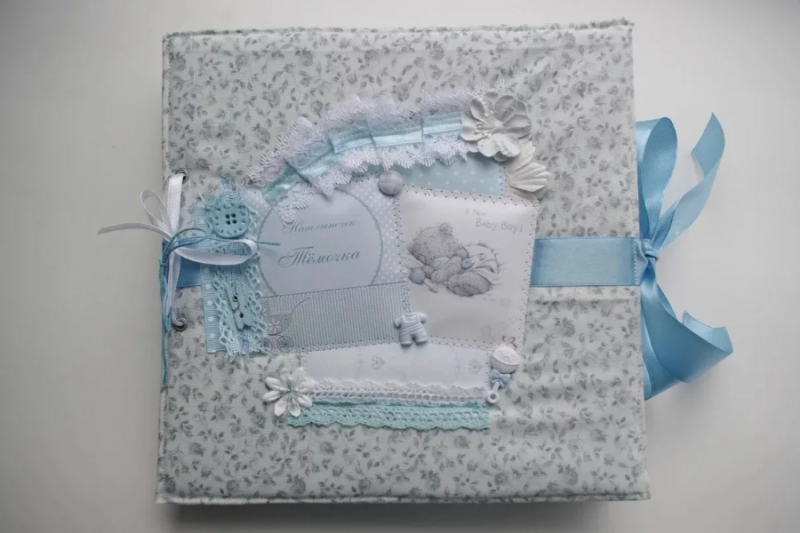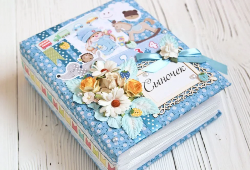 Рождение ребенка – один из наиболее популярных поводов для создания тематического альбома. Для его оформления можно придумать огромное множество вариантов. Очень интересно смотрятся альбомы необычной формы – в виде любимой игрушки – машинки, кораблика или зайчика – для мальчика, неваляшки или кареты для девочки. На каждой страничке можно разместить карточки, на которых будет очень удобно отмечать все изменения, происходящие с растущим малышом.