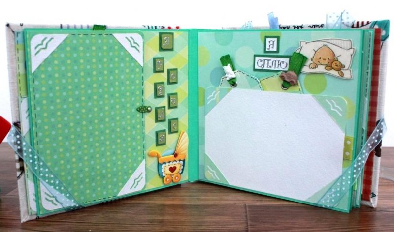 На первых страницах альбома стоит разместить фото с изображениями мамы и папы в ожидании счастливого момента, снимок УЗИ, лучше трехмерный, встречу мамы с малышом на руках в момент выписки из роддома. После этого останется только заполнять следующие странички по ходу взросления ребенка. Лучше делать это каждый месяц, отмечая все изменения и новые достижения малыша. Не забудьте сфотографировать его коляску, любимую игрушку, первые сандалики. Украсьте странички наклейками и милыми мелочами в соответствии с выбранной тематикой.