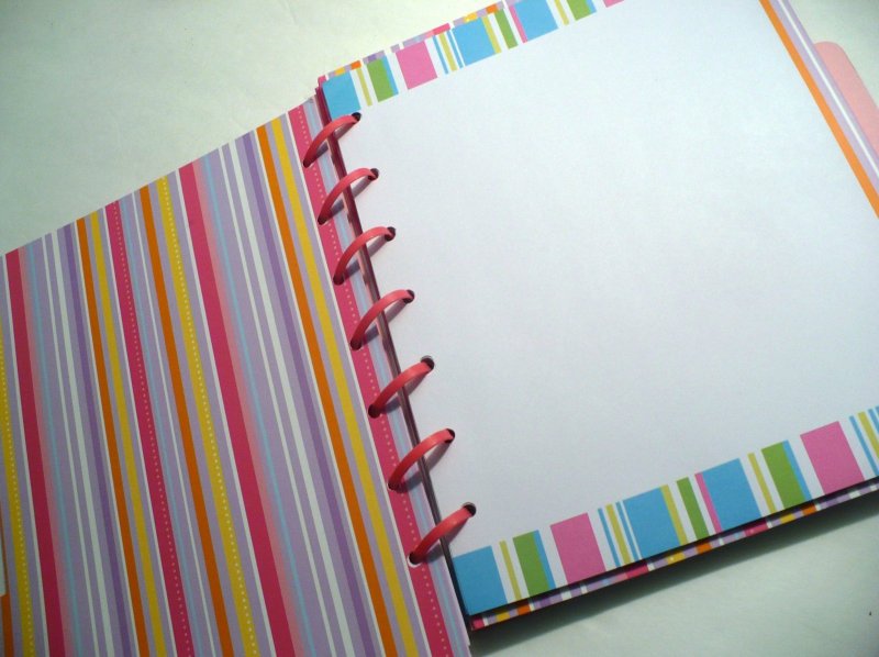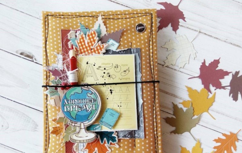 Приступаем к разработке проекта, используя подходящий сюжет и идею для его оформления. Главное – четко представлять результат своей работы. Вот здесь нам и пригодится тетрадь. Лучше, чтобы она соответствовала по размеру своему прототипу. Мы будем использовать ее в качестве шаблона. На страницах тетради можно «примерить» имеющийся декор, сделать несколько вариантов раскладки фотографий. Самый удачный вариант нужно зафиксировать и ориентироваться на него при оформлении изделия.