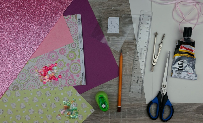 - дизайнерской бумагой большой плотности. Понадобится 24 листа с габаритами 19х20 см;