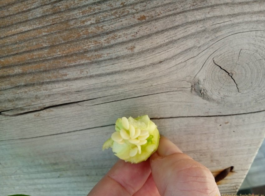 Именно поэтому все семена, прикрепленные к внутренним перегородкам плода, а также к усам, не годятся на роль посадочного материала из-за своей минимальной продуктивности. Они обладают мизерной жизненной силой, всходят плохо и долго, всходы часто болеют и загнивают.