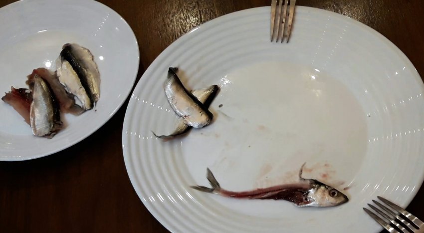 Быстрая разделка кильки не прикасаясь руками - «Сделай сам»