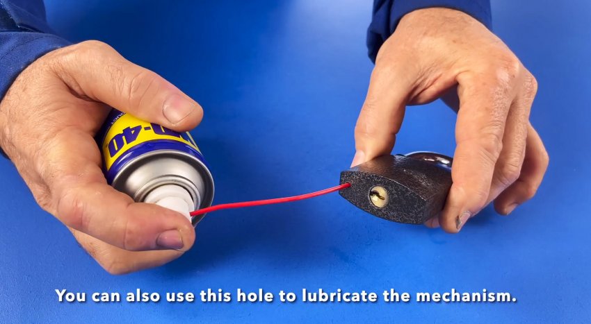 Но его также можно использовать для смазки механизма замка через подходящую трубочку, например, средством WD-40.