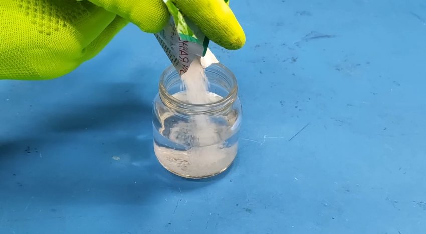 Смесь перемешивается до тех пор, пока не станет абсолютно прозрачной. В результате получается насыщенный раствор, который можно использовать для пайки в качестве активного флюса. Проведём эксперимент.