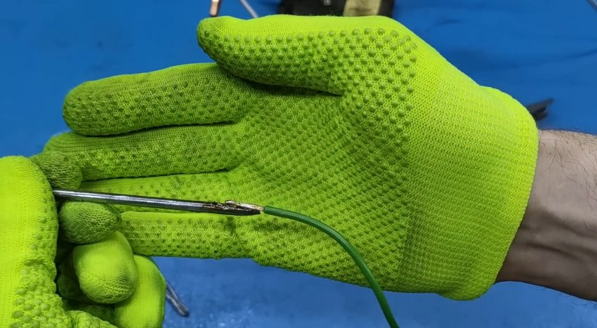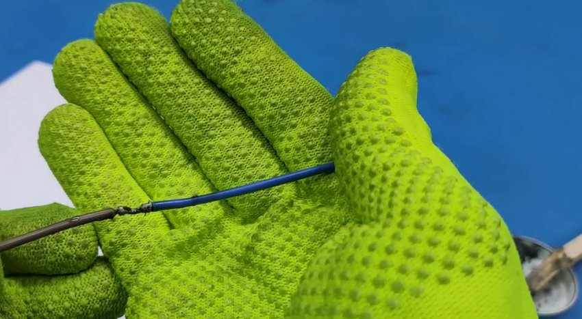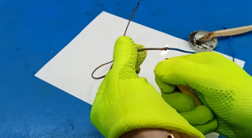 Припой ложится моментально, ровно. Скрутка проводов запаяна. Очень удобно работать в неприспособленных «полевых» условиях.