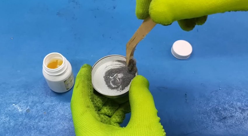 Смешиваются насколько возможно тщательно. Должна получиться однородная масса. Чтобы паять такой самодельной паяльной пастой, не понадобится даже паяльник.