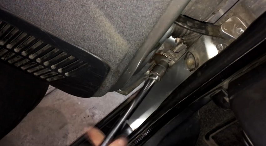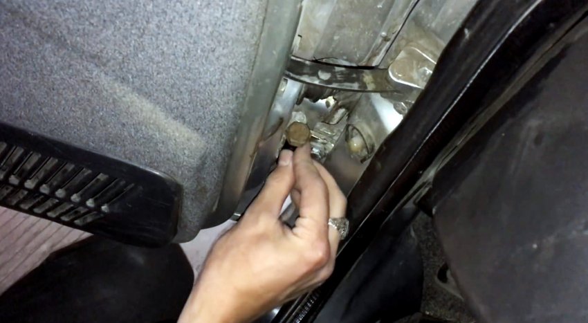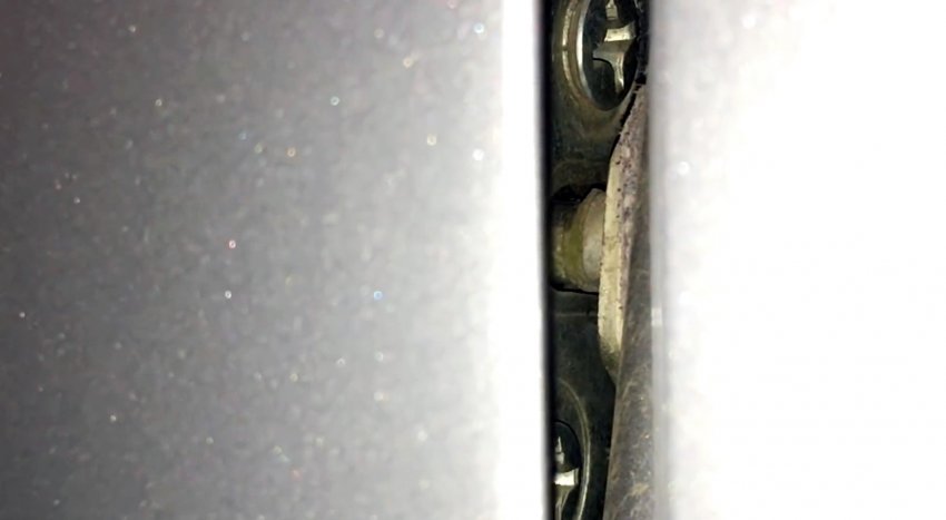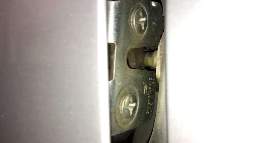 Достаточно зажать этот метиз в районе нижней петли путем контролируемого надавливания на дверцу. Здесь нельзя переусердствовать, поскольку вернуть ситуацию в первоначальное положение будет довольно сложно.