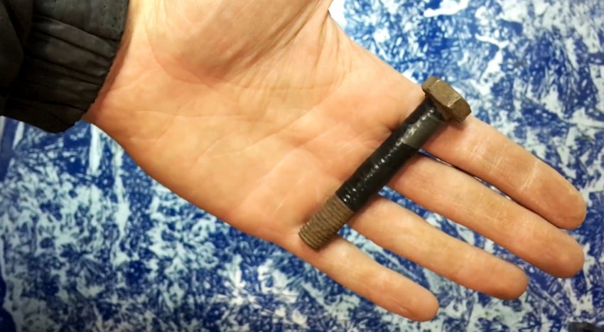 Другой вариант ремонта выполняем с помощью лишь одного стандартного болта, предварительно намотав на него изоленту, во избежание повреждения лакокраски.