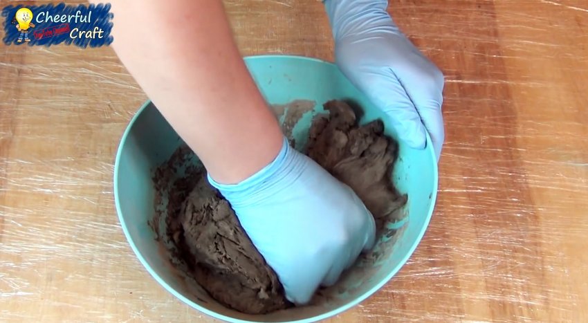 Снова тщательно перемешиваем полученную массу сначала ложкой, а затем руками в перчатках также до получения однородной смеси.