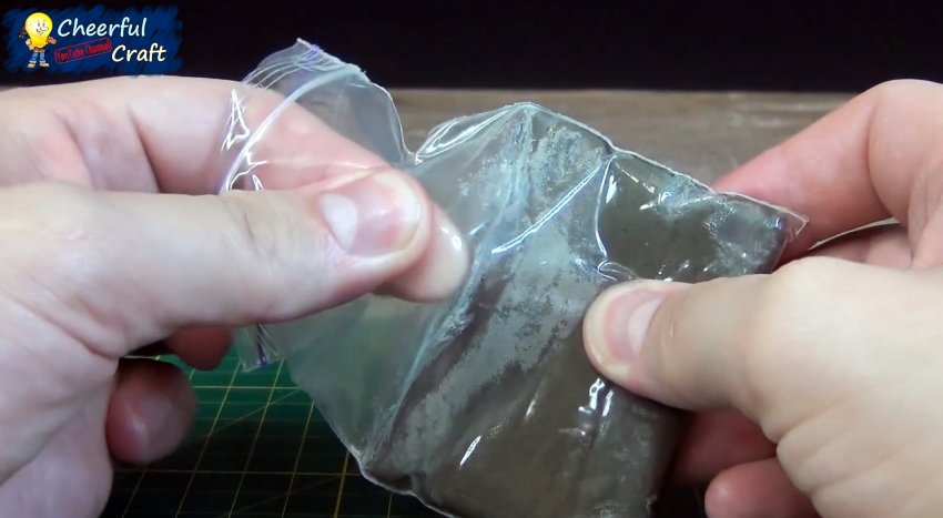 После чего смазываем руки жирным кремом или любым маслом и приступаем к упаковке самодельной домашней глины в полиэтиленовые пакеты с герметичными упаковочными замками.