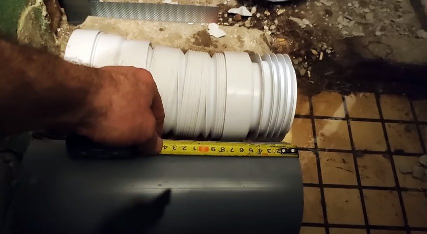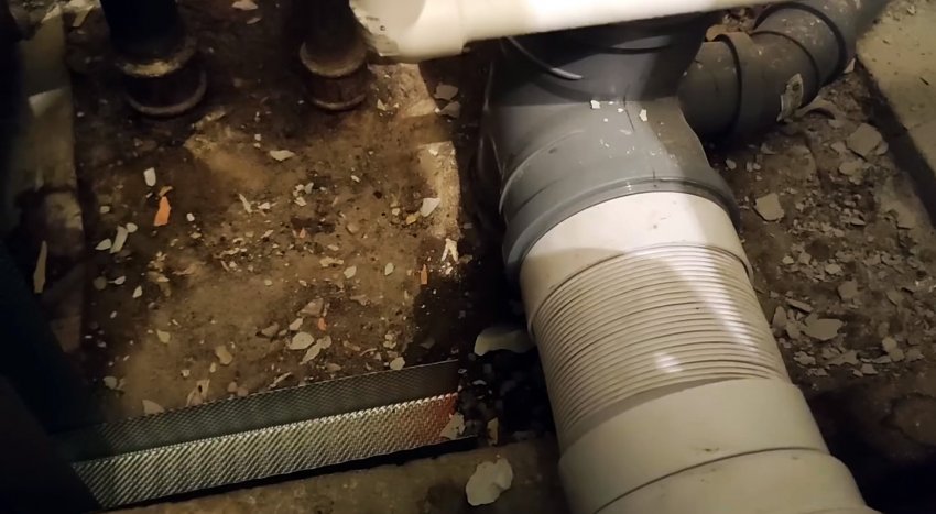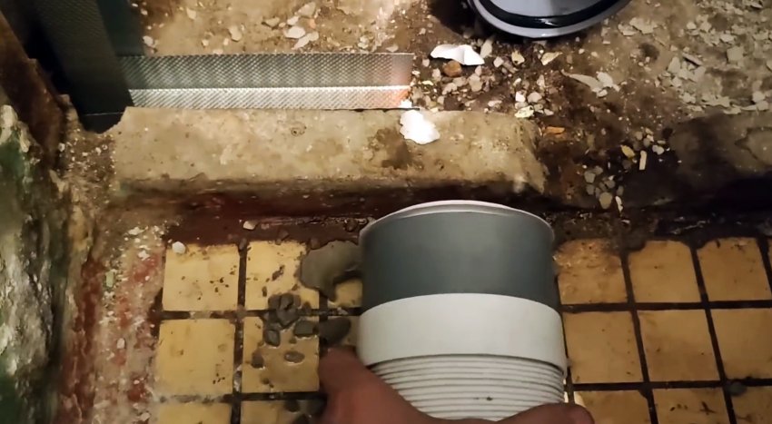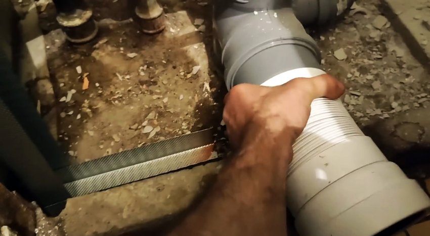 Для облегчения усилий можно использовать специальную смазку для сборки труб ПВХ или просто мыльную воду. До установки унитаза просовываем руку в переходник и убеждаемся, что ресничка не завернулась. Этот простой лайфхак раз и навсегда устранит одну из причин запаха из канализации.