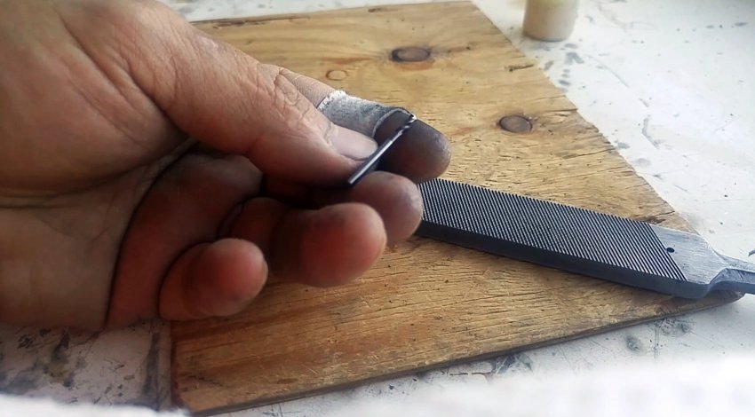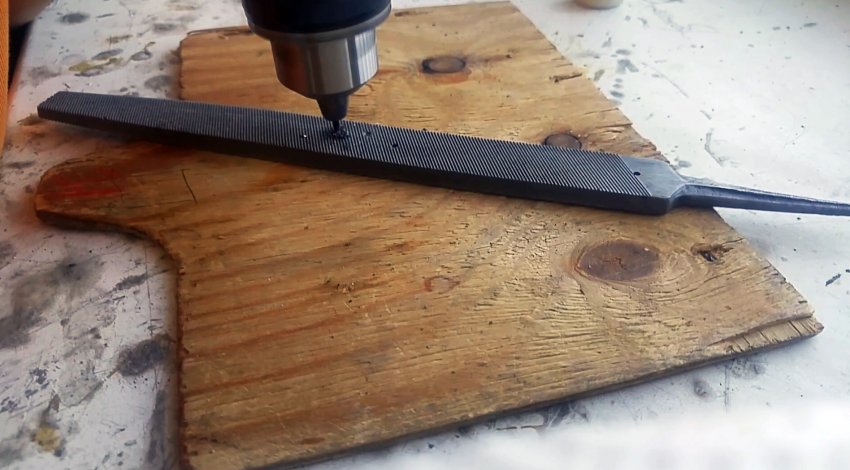 Особенно надо быть внимательным перед окончанием операции по сверлению напильника. При выходе сверла с обратной стороны напильника его может зажать и сверло пострадает от хрупкого разрушения.