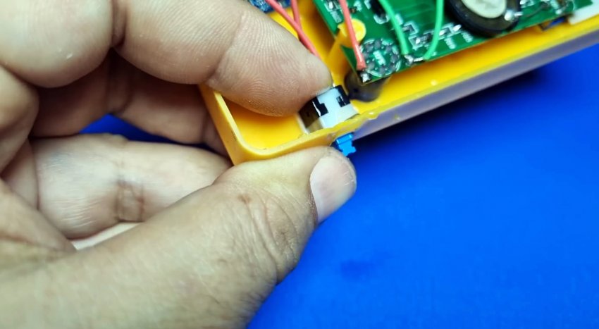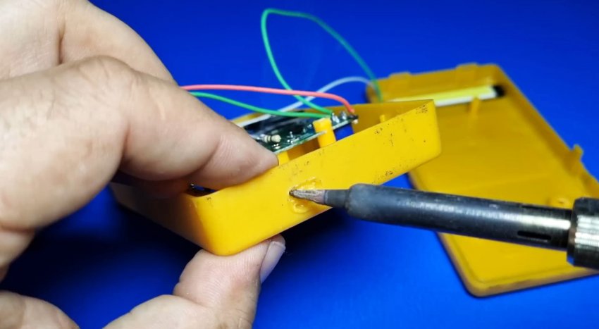 Паяльником делаем отверстия под гнездо зарядки и выключатель.