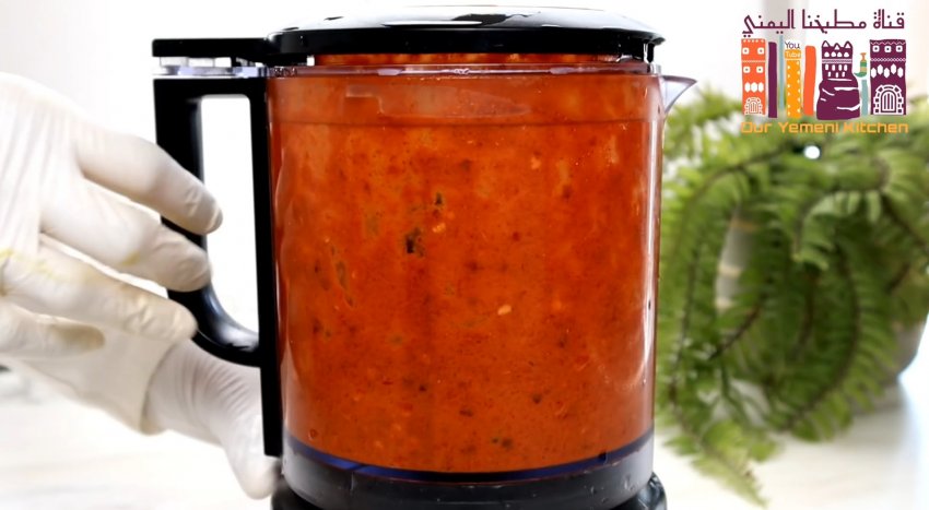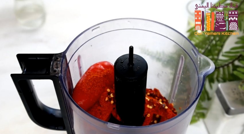 В комбайне или блендере размельчаем половинку помидора, два острых перчика, 2 ст. л. острого перца и 1 ст. л. хлопьев чили. Вливаем 3 ст. л. уксуса, 1 ст. л. любого растительного масла, все солим.
