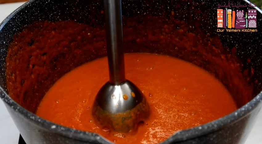 Все хорошо обжариваем, кладем томатную пасту, солим. Готовим на сильном огне в течение 5 минут, заливаем стаканом воды и тушим под крышкой 20 минут. Добавляем уксус, доводим до кипения и взбиваем все блендером до однородной массы.