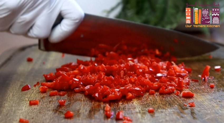 Очищаем лук и перец, нарезаем максимально мелкими кубиками.