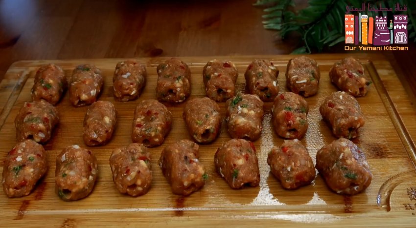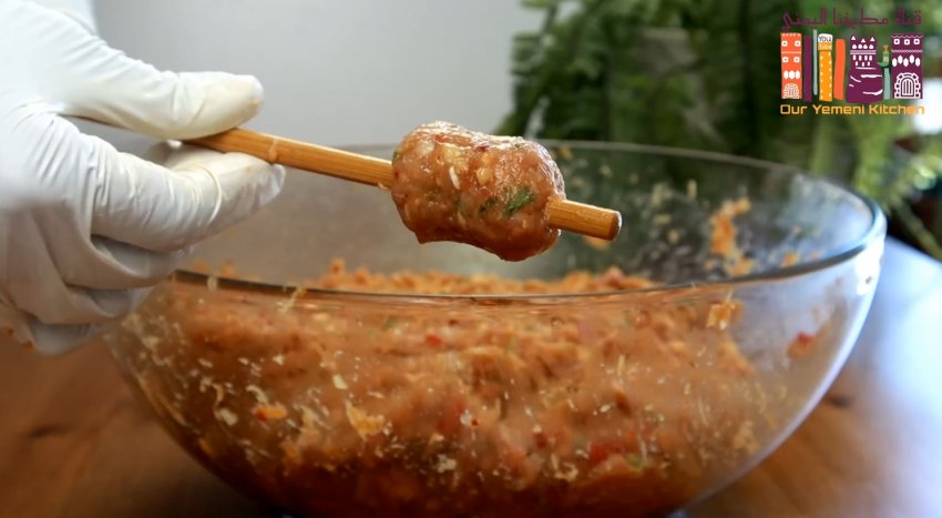 Смачиваем руки водой и формируем из фарша чуть вытянутые шарики. Аккуратно нанизываем на палочки для еды или деревянные шпажки. Затем снимаем с палочек, раскладываем на деревянной доске и отправляем в морозилку на 30-40 минут.