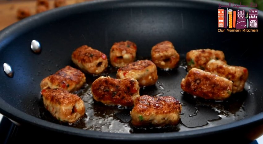 Разогреваем сковороду и добавляем небольшое количество растительного масла. Выкладываем кусочки фарша и обжариваем со всех сторон на среднем огне, переворачивая по мере готовности.