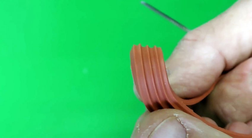В профиле скребка делаем неглубокие пропилы, которые далее облегчат работу. В местах пропилов на матрице будут выступы. После заливки силикона и накрытия стеклом, прокладка будет отделена от стекающего силикона. Ее будет легко извлечь из формы и она будет без облоя.