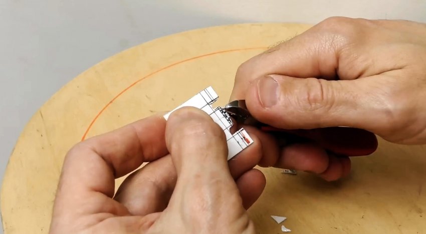 После чего устанавливаем фигуру скребка. Лезвие скребка делаем из тонкого пластика по чертежу.
