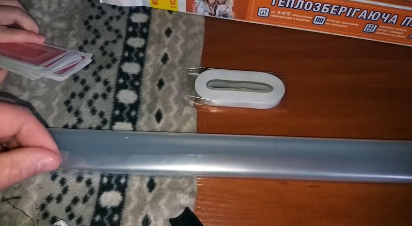 В комплект такой пленки входит двухсторонний скотч и подробная инструкция по ее применению. После распаковки пленки обнаруживается, что она имеет ширину 80 см и сложена вдвое. Для работы с такой пленкой понадобятся обыкновенные ножницы, острый нож и бытовой фен.