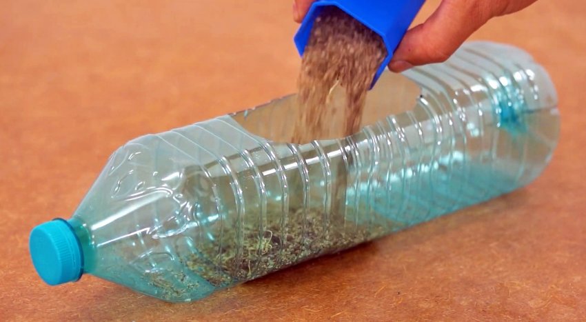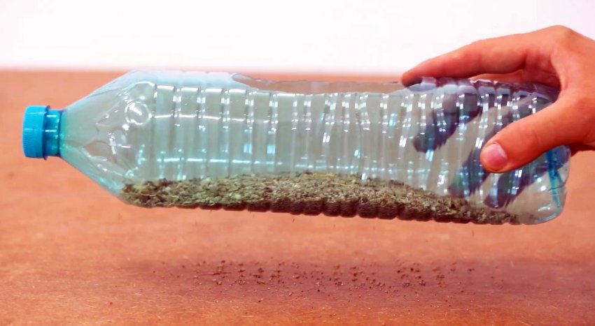 В итоге мелкая фракция песка окажется снаружи, а крупные останутся внутри бутылки.