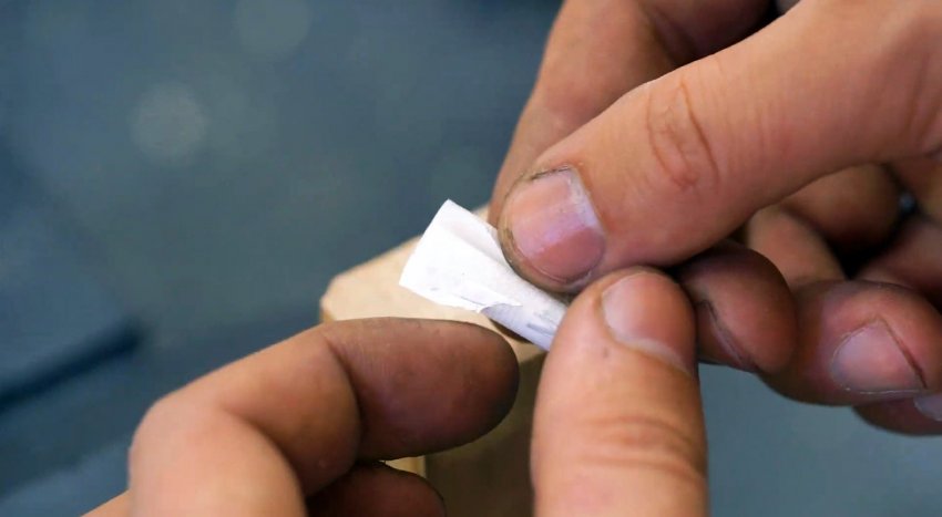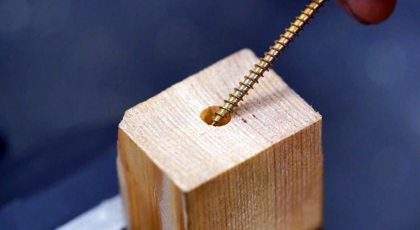 Для закрепления шурупа в большом отверстии в заготовке из дерева отделяем фильтр от сигареты, разрезаем наружную оболочку и помещаем его в отверстие. Выступающую часть отрезаем и пропитываем суперклеем.