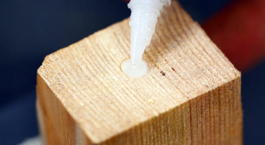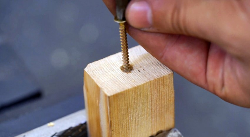 Дожидаемся затвердевания клея и вкручиваем шуруп.