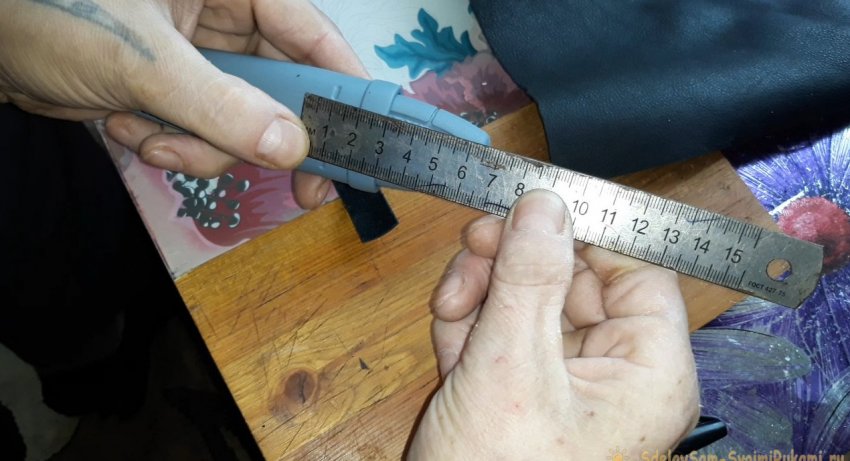 Затем отрежьте полоску кожи в замененное расстояние, шириной в 2,5 сантиметра.