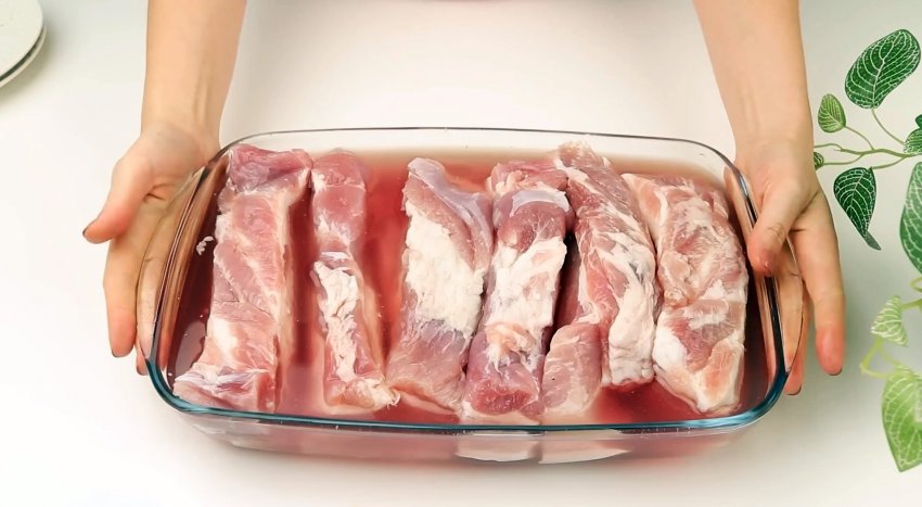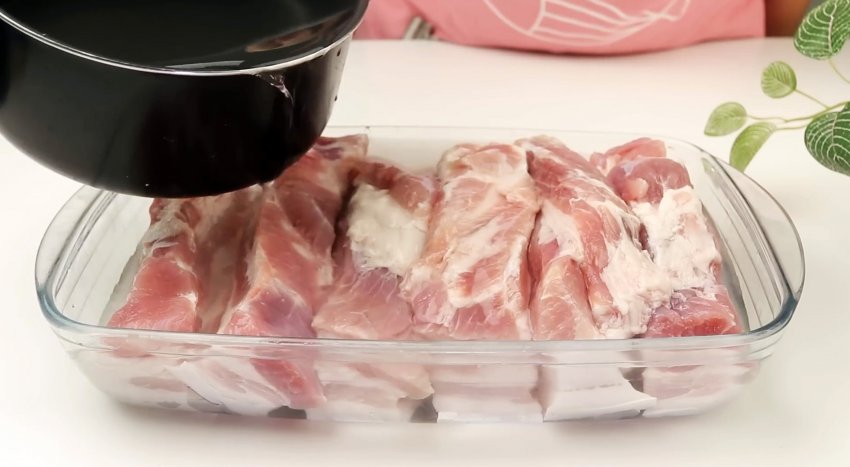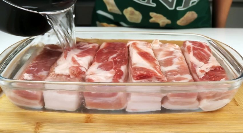 Достаем грудинку, промываем посуду, мясо оставляем как есть.