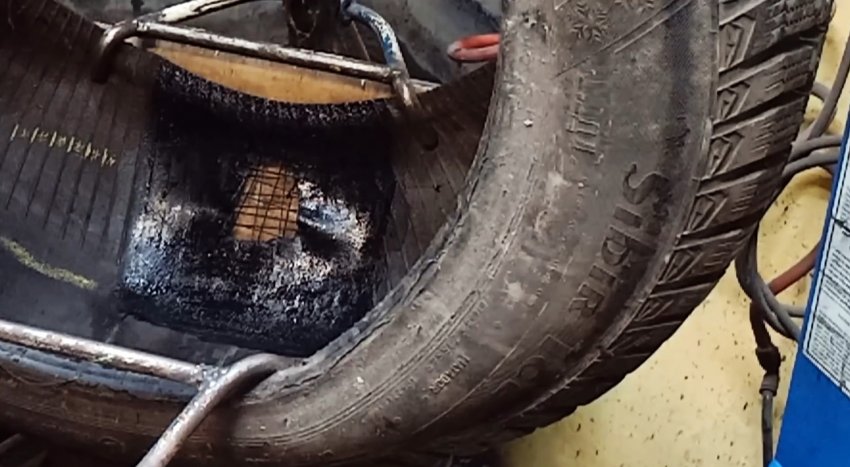 Чтобы исключить эти опасные явления, прогреваем место вулканизации без сырой резины при температуре 150 градусов Цельсия в течение не менее 10 минут. Затем без затяжки времени на еще горячую шину укладываем небольшими лоскутиками сырую резину, предварительно смазав края отверстия термоклеем, который также должен полностью высохнуть.
