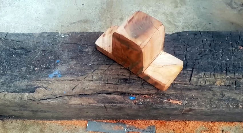 Фрезером вырезаем из толстой деревянной доски фигуру в виде подшипникового корпуса, по центру которой сверлим с помощью дрели и кондуктора сквозное отверстие в продольном направлении, куда вставляем резьбовую сторону стержня болта.