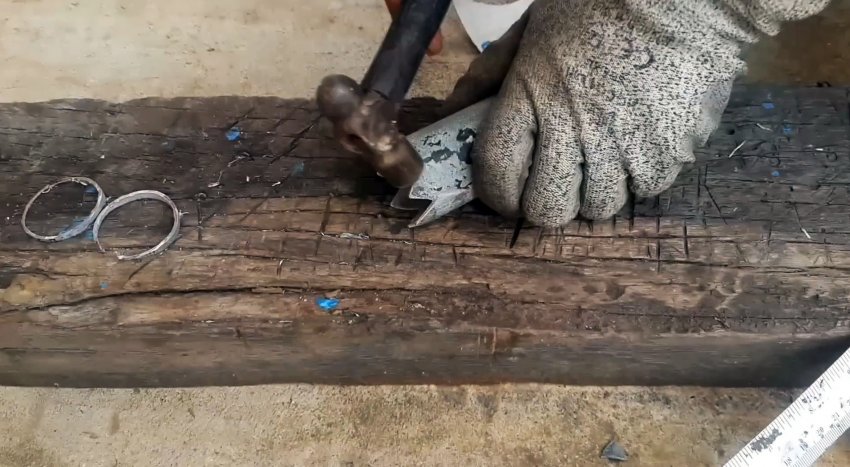 Выполняем торцовку трубы с двух сторон болгаркой и делаем острые торцевые зубцы треугольной формы с одного конца, которые подправляем наждачной бумагой. Сгибаем полученные зубцы молотком внутрь на один и тот же небольшой угол.