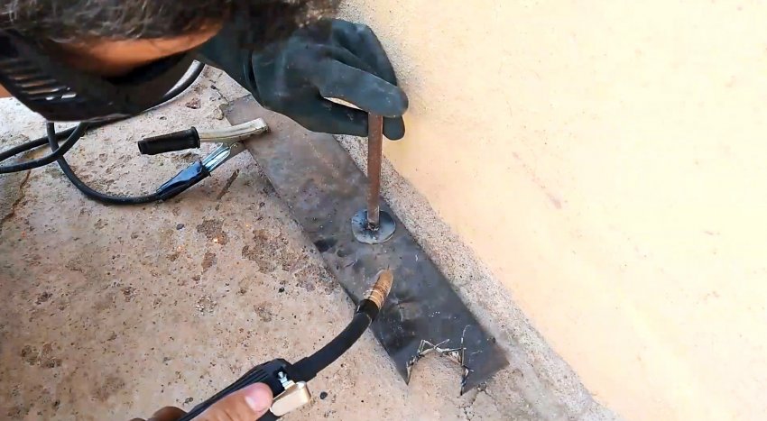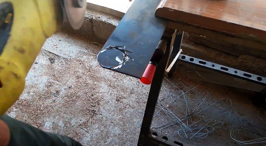 Из остатка небольшого листового металла вырезаем с помощью болгарки круг, обрабатываем края и к его центру вертикально привариваем небольшой отрезок арматуры или прутка. Этот круг должен свободно входить в отрезок круглой трубы заданной длины.