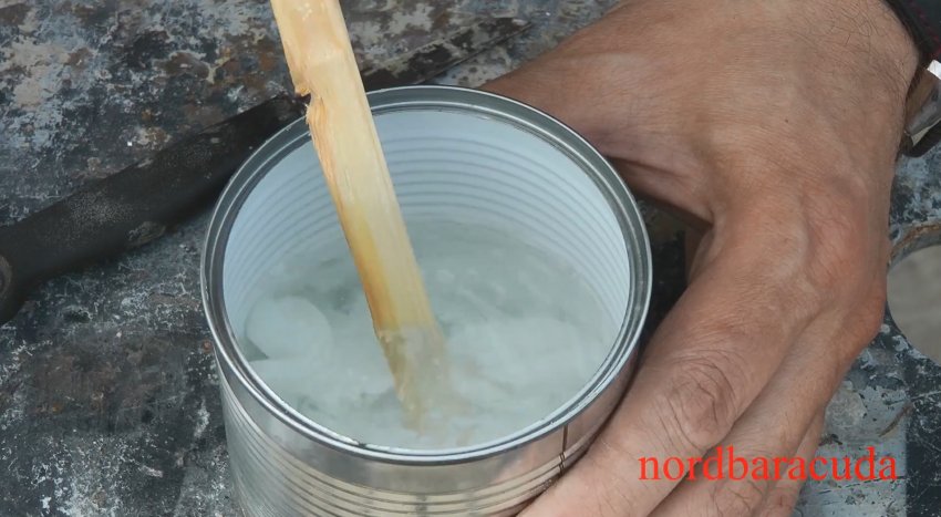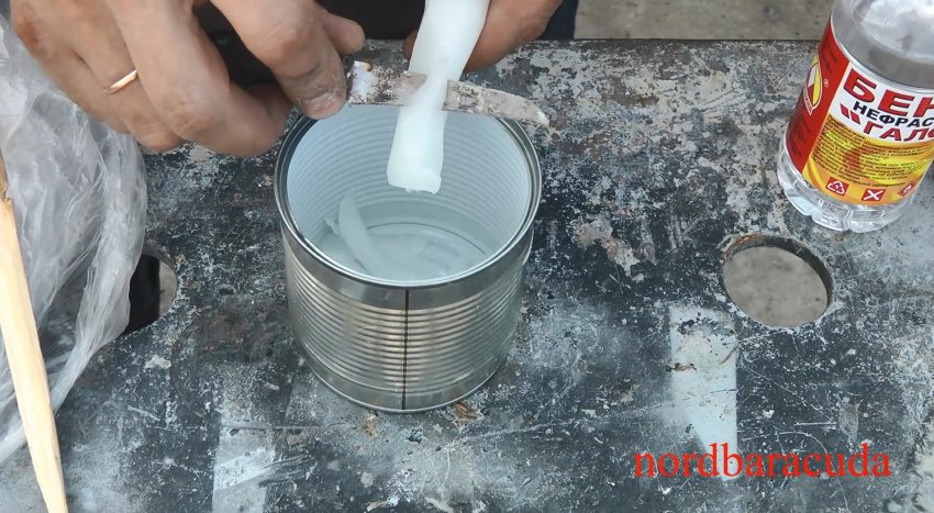 Способ приготовления пропиточного состава довольно простой. В жестяную емкость настругиваем тонкой стружкой парафин или натираем на крупной терке и заливаем бензином, помешивая компоненты небольшой деревянной палочкой до полного растворения парафиновой стружки.