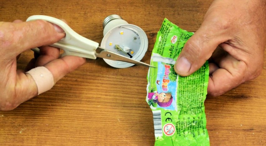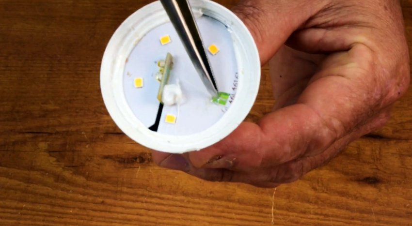 6. Как отремонтировать светодиодную лампу кусочком фольги