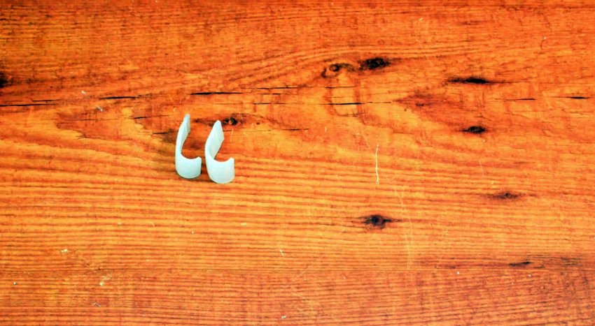 Отрезаем от пластиковой трубы 2 фрагмента длиной, соизмеримой с шириной защелок на кейсе. Разрезаем фрагменты продольно, распрямляем один край и просверливаем отверстия. Крепим шурупами их к верхней части защелок так, чтобы загиб фрагментов фиксировался на нижней части защелок.