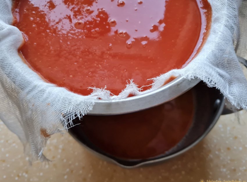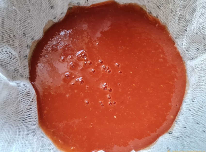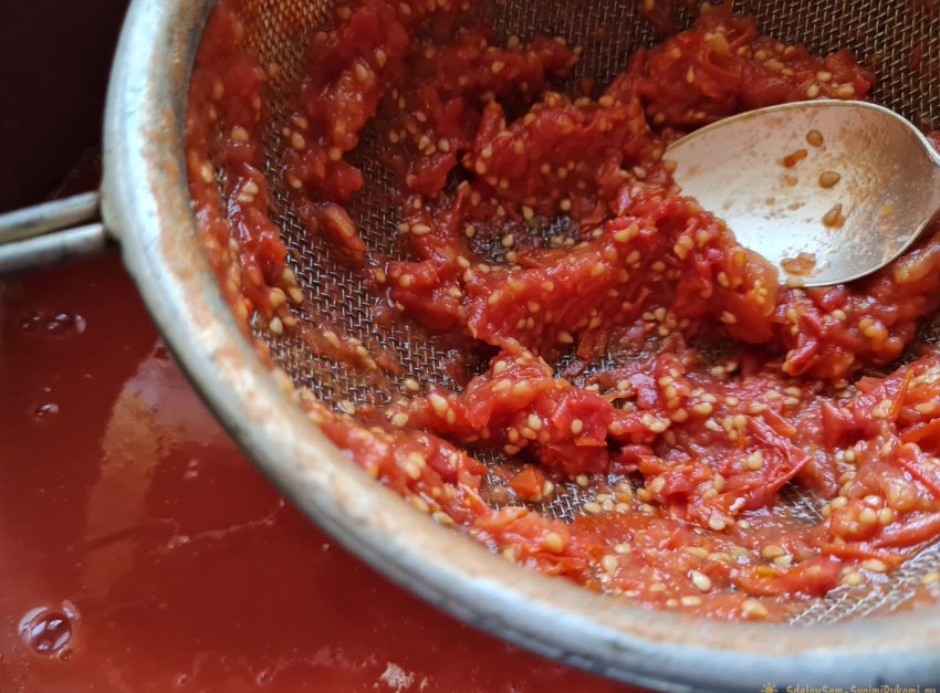 Раньше поступала проще. Например, с помощью соковыжималки добывала сок. Оставляла отстаиваться. Буквально за час отслаивалась гуща. Ее собирала половником, подвешивала в плотном мешке. В таком состоянии масса хорошо загустевала. Затем примерно час уваривала ее до необходимой консистенции. После чего, подсолив, раскладывала по стерилизованным емкостям.