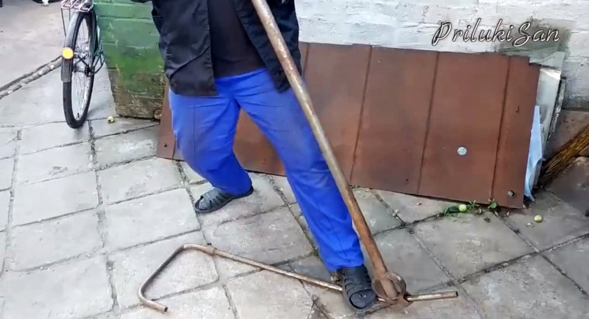 Если изгибаемый конец деформируемой трубы окажется слишком коротким, то на него можно надеть отрезок трубу большего диаметра, чтобы была возможность прижимать указанный конец к земле ногой.