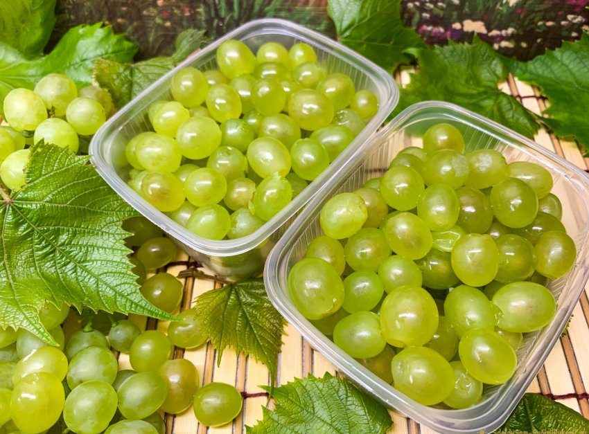 6. В пластиковые одноразовые контейнеры среднего объема, чтобы хватило одного контейнера на приготовление одного блюда, выкладываем подготовленный виноград.