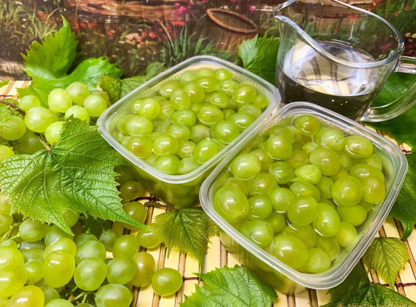 Заморозка — это один из самых удобных способов сохранить полезные вещества с минимальными потерями. Замораживать в сахарном сиропе следует светлые сорта винограда. Сироп готовят из двух стаканов воды и одного стакана сахара. Изменять пропорции сахара и воды не рекомендуется. Такая заготовка отлично подойдет для варки компотов, варенья и приготовления десертов.