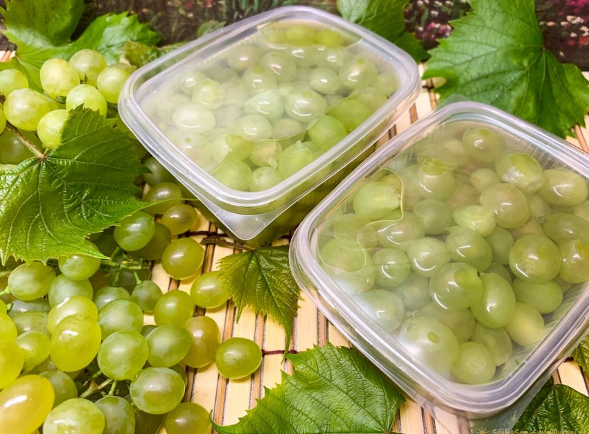 8. Закрываем плотно контейнеры крышками и отправляем в морозилку на хранение. При правильной заморозке виноград может храниться до нового урожая.