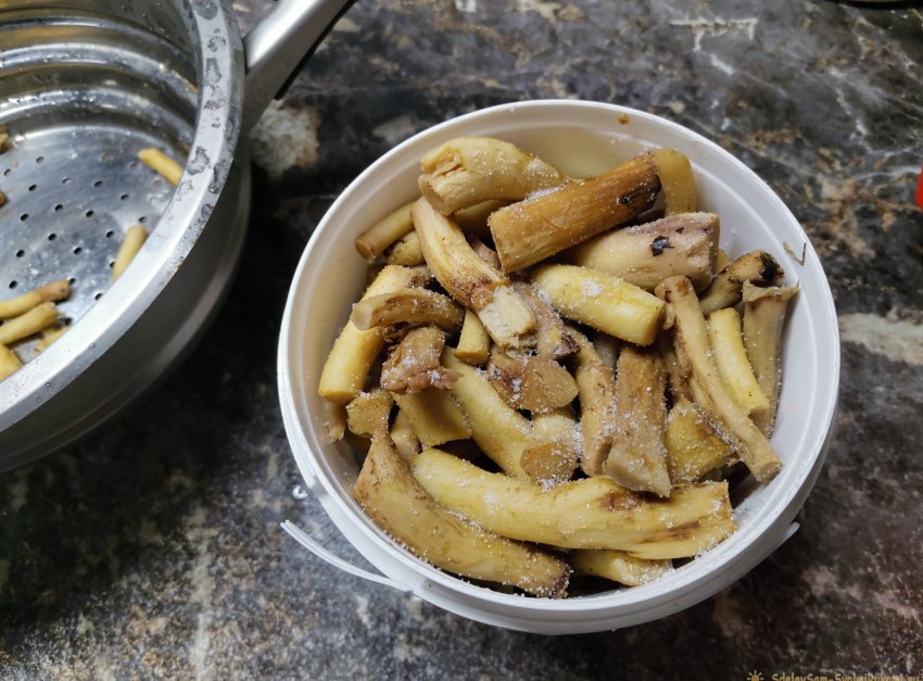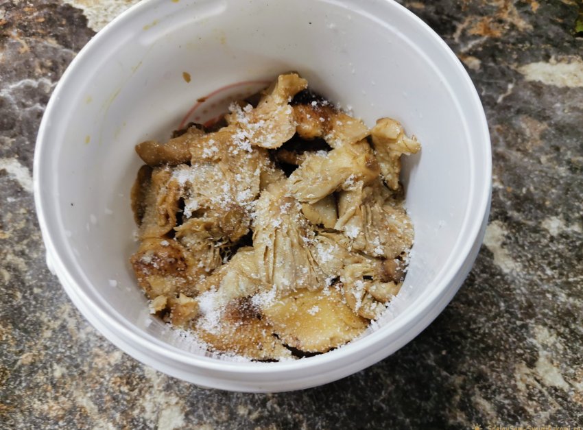 Лучше оставить рядовки на 1-2 часа, несколько раз перекладывая или перемешивая. Жидкость должна стечь полностью.