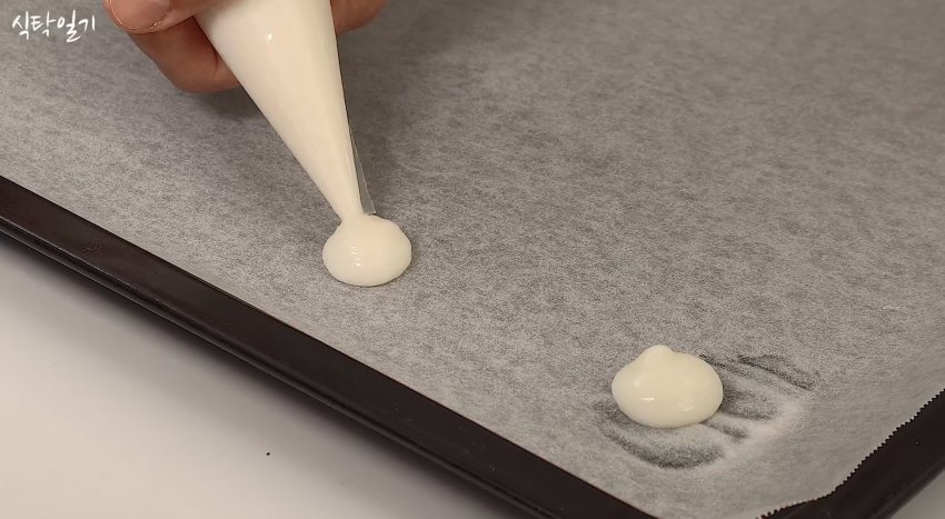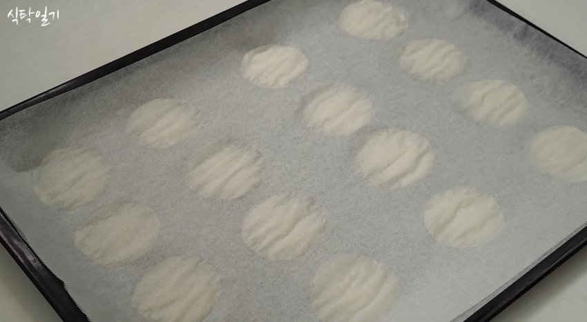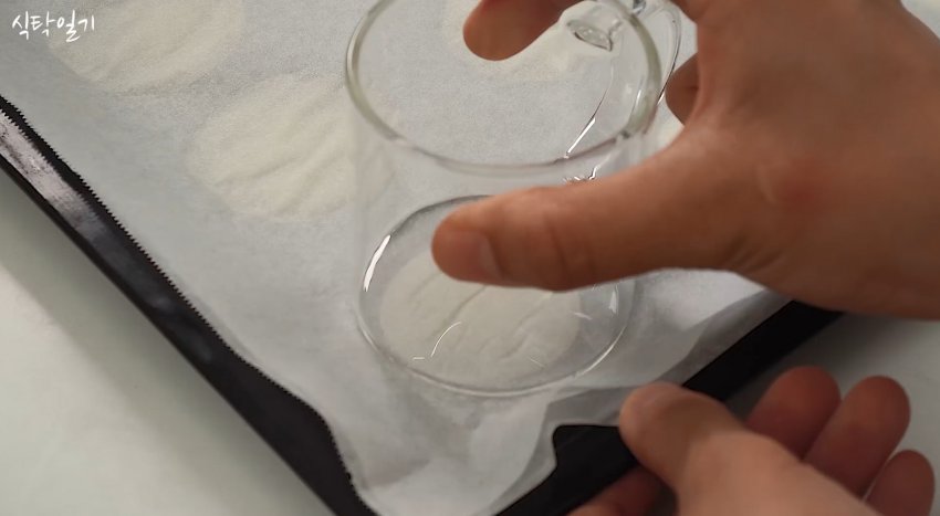 Переливаем смесь в кондитерский мешок. На противень выкладываем пекарскую бумагу или пергамент. Выдавливаем небольшие шарики картофельной массы и накрываем таким же листом бумаги. С помощью обычной кружки придавливаем шарики, превращая их в плоские кружочки.