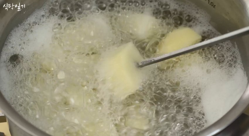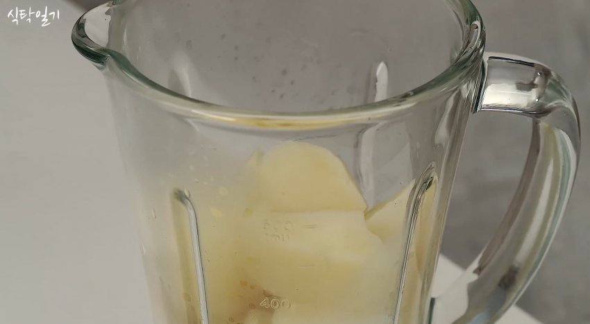 Выкладываем в дуршлаг или сито и даем стечь воде. Режем лук и отправляем вместе с готовым картофелем в комбайн. Также можно измельчать продукты погружным блендером.